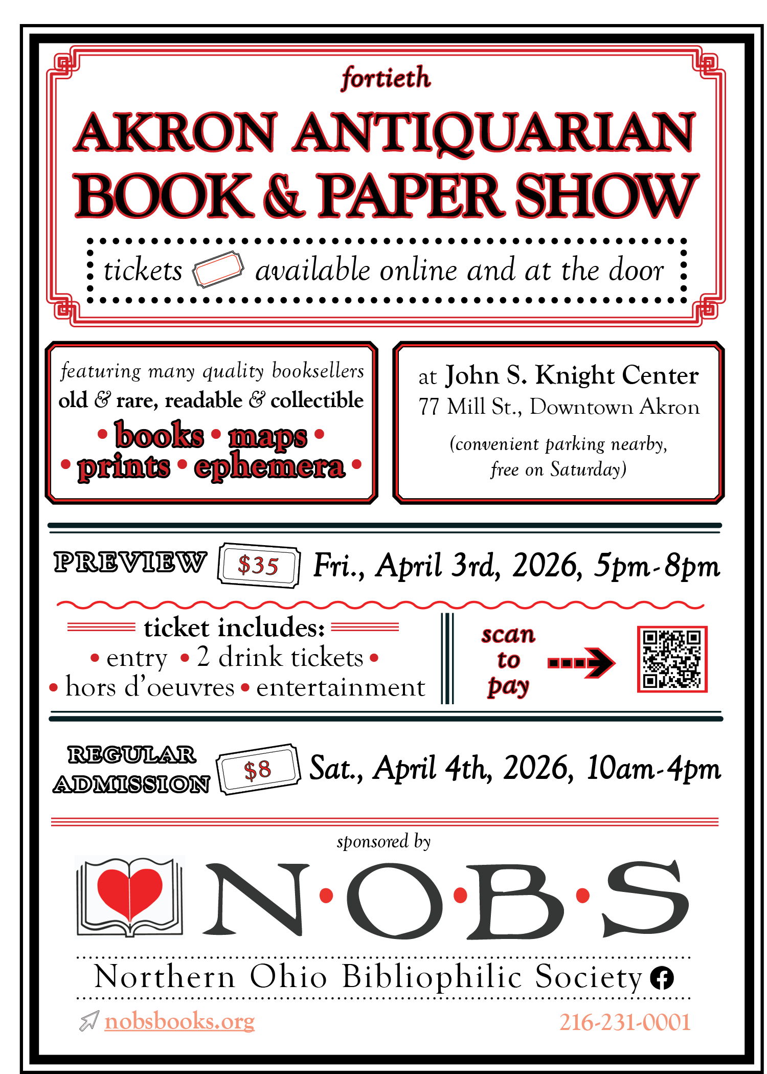 It’s that time of year again! Don’t miss the 40th Akron Antiquarian Book & Paper Show, Friday, April 3rd, and Saturday, April 4th!